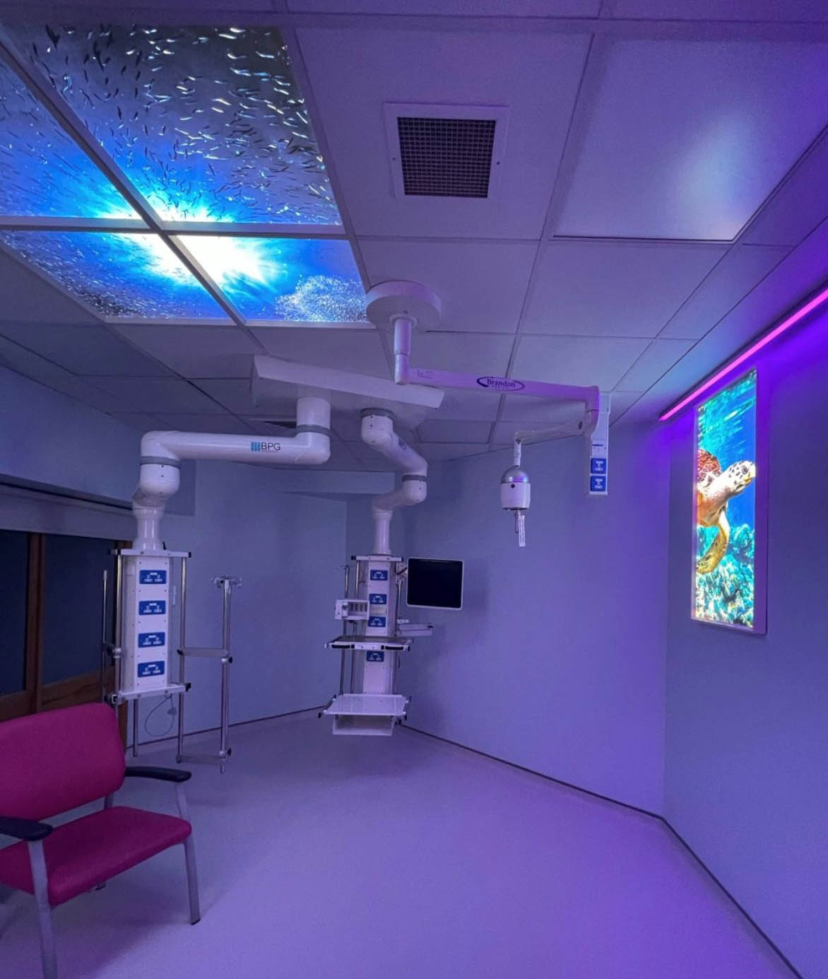 In the specialist neuro ICU, LST has replaced 13 pendants, enabling cables and wires to be safely organised and more effective access to medical equipment and gases. The team was also responsible for installing the associated steelwork for the pendants, and refurbishing the entire ward, including new ceilings, floors and decoration.